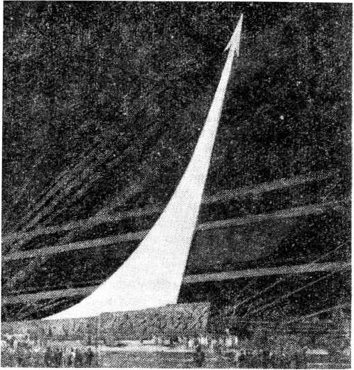 Получивший первую премию проект 50-метрового обелиска в ознаменование запуска Советским Союзом первого в мире искусственного спутника Земли.