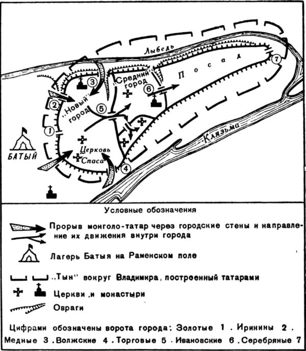 Вся тяжесть борьбы против сильного и опытного в осаде городов врага легла на немногочисленные дружины сыновей великого князя и в основном на посадское население и крестьян, собиравшихся из окрестных сел и деревень под защиту крепостных стен. Все владимирцы, от мала до велика, взяли в руки оружие.
