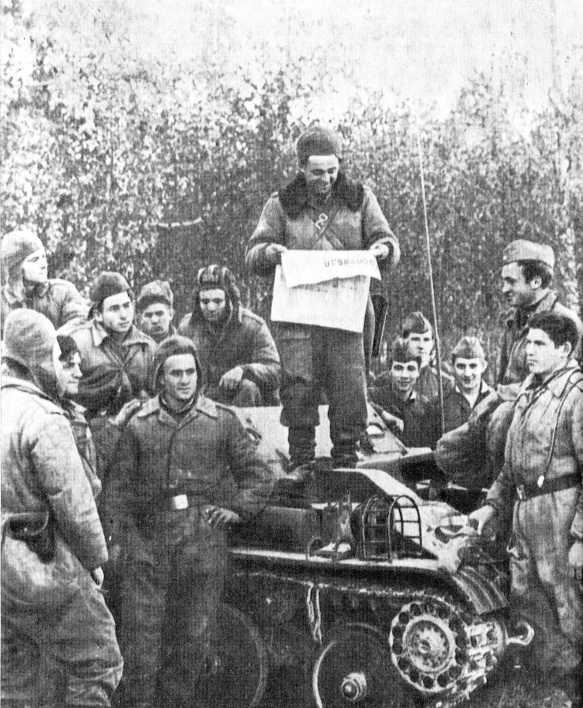 Наши танки бороздят снежные равнины Заполярья и пустыни Средней Азии, вспенивают морские просторы и переносятся по воздуху транспортной авиацией. Ни с чем не сравнима служба танкиста наших дней, насыщенная романтикой стремительных атак, дерзких огневых ударов, глубоких обходных маневров.