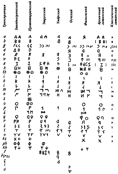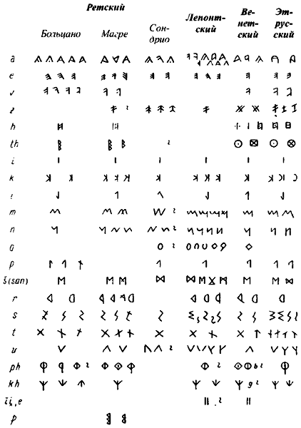 Рис. 182. Ретский, лепонтский и венетский алфавиты.