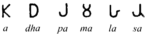 Рис. 187. Древнейший образец письма брахмы (надпись на монете).