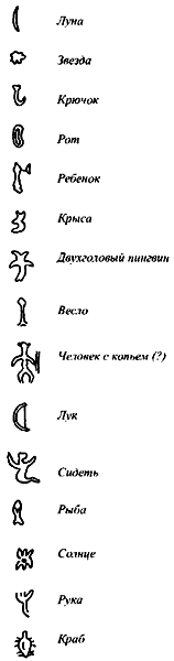 Рис. 192. Несколько знаков письменности острова Пасхи.