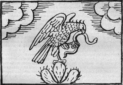 Яркие лучи полуденного солнца и острое ощущение голода пробудили его. Первое, что увидел тлашкаланский воин, был орел, взлетевший над мощным кустом агавы со змеей, извивающейся в его когтях. Боги, несомненно, благословляли дорогу тлашкаланца в этой стране. Когда теночки пришли в долину Анахуак, они построили свой город на том месте, где увидели орла, сидящего на кактусе со змеей в когтях. Жрецы тогда решили, что орел со змеей в когтях — божественное предзнаменование могущества теночков.