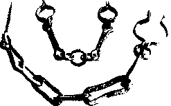 Существовали «чепи», которые закрепляли на металлическом поясе вокруг талии преступника. В 1774 г. любопытствующие из дворян видели Пугачева в симбирской тюрьме «скованного по рукам и ногам железами, а сверх тою около поясницы его положен был железньш обруч с железной же цепью, которая вверху прибита была в стену» (608, 355; 684-7, 96). Из других источников известно, что один конец цепи вбивался в стену, лавку или в пол с помощью так называемого «ершового клина» с зазубринами, а на другом конце укреплялся ошейник, ножной браслет или упомянутый железный пояс с запирающимся «цепными ключами» навесным «цепным замком» (278-12, 146). Такая цепь называлась «настенной», а жизнь заключенного в таком положении называлась «цепным содержанием». Пугачева в Москве, в Монетном дворе, содержали так же, как и в Симбирске: «Злодей посажен в уготованное для его весьма надежное место на Манетном дворе, где сверх того, что он в ручных и ножных кандалах, прикован к стене». Кроме того, Пугачев сидел за специальной решеткой. Она ныне хранится в Государственном историческом музее. Решетки, отделяющие узников от выхода, упоминаются и при описании других тюрем (655, 4).