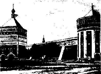 История тюрьмы — тема весьма популярная в историографии. Ей посвящено немало научных работ. Устройство порем XVIII в. (а это были преимущественно пересылочные тюрьмы) повторяло устройство таких же заведений XVII в. Тюрьмы назывались острогами и представляли собой пространство, обнесенное высокой (до 10 м) стеной-тыном из вертикально поставленных бревен, с одними воротами. В написанном Екатериной II проекте о тюрьмах выразительно говорится: «Тюрьмы строить замком» (722, 66). В центре такого замкового двора стояла деревянная казарма без внутренних перегородок, в ней на голых нарах спали заключенные. Казарма отапливалась печами. Были тюрьмы, где вместо одной большой казармы строили несколько изб поменьше, внутри каждой одна-две камеры — «колодничьи палаты» (или просто — «колодничьи»). В XVII в. в Московском остроге избы имели собственные названия, что говорило об известной классификации «тюремных сидельцев» (так называли заключенных): Опальная, Разбойная, Татарка, Холопья, Сибирка, Женская (296, 330; 626-2, 227 и др).