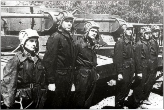 Предвоенная фотография запечатлела экипажи советских Т-26 в строю перед своими боевыми машинами.