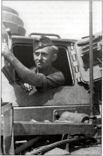 Немецкий танкист, выглядывающий через боковой люк башни танка Pz.III.