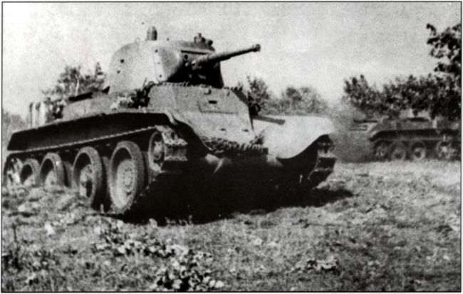 Советские легкие танки БТ-7. Их 45-мм пушка позволяла им бороться даже со средними немецкими Pz.III и Pz.IV.