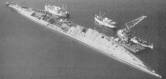 После гибели «Бисмарка» немцы использовали однотипный «Тирпиц» крайне осторожно. Собственно говоря, на его счету тоже всего лишь одна боевая операция — почти безрезультатный поход к Шпицбергену в сентябре 1942 года. Остальное время сверхлинкор прятался в норвежских фьордах и методически избивался английской авиацией. Кроме того, 11 сентября 1943 года он получил сильнейший удар из-под воды: британские сверхмалые субмарины Х-6 и Х-7 подорвали под его днищем 4 двухтонные мины. После этого надежд на выход «Тирпица» в море уже практически не оставалось…