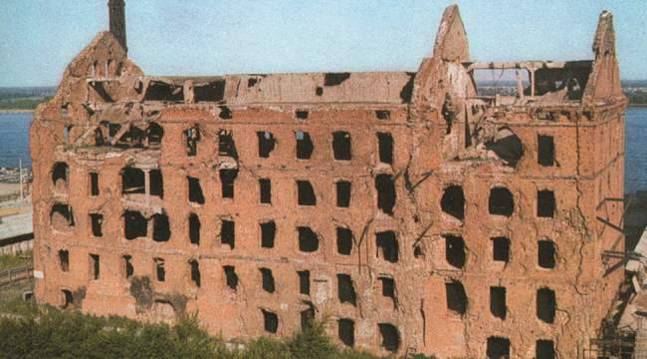Руины в Сталинграде Сталинградская битва началась 17 июля 1942 года со столкновения частей 62-й советской армии и передовых отрядов 6-й немецкой армии под командованием генерал-полковника Ф. Паулюса в излучине Дона. 23–29 июля 6-я армия предприняла попытку с ходу ворваться в Сталинград. Однако героическая оборона солдат 62-й и 64-й армий в совокупности с контрударом, нанесенным соединениями 1-й и 4-й танковых армий, обусловила срыв замысла противника. Паулюс воочию убедился, что 6-я армия не сможет в одиночку форсировать Дон и нужно ждать подкрепления. Поэтому-то в первую неделю августа и наступило временное затишье на Сталинградском фронте. В середине августа немцы, чьи силы к тому времени уже успели значительно окрепнуть, вновь перешли в наступление, нанося одновременно удары с запада и юго-запада с целью овладеть Сталинградом. К вечеру 23 августа один из танковых корпусов пробился к Волге северо-западнее города, вслед за ним двигались моторизованные и пехотные части. Но эту атаку советские бойцы смогли отразить. Между тем немцы продолжали наращивать силы, готовя основные из них для битвы непосредственно за город. В середине сентября им удалось занять некоторые здания в центре города. Но там фашисты пробыли недолго, т. к. вновь прибывшая к месту военных действий стрелковая дивизия генерала А. И. Родимцева очистила от них многие улицы и кварталы города и выбила их из вокзала Сталинград-1.