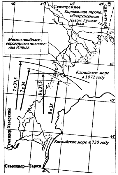 Рис. 3. Местоположение города Итиля, столицы хазар (по Могаричеву Ю.М.)