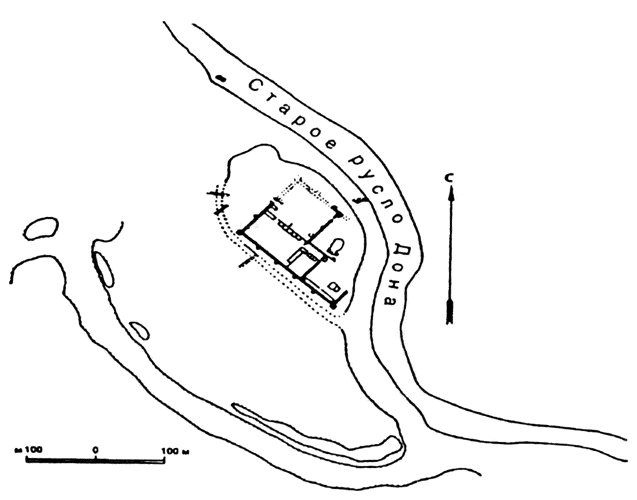 Рис. 6. План Правобережного Цимлянского городища. (Из книги С.А. Плетневой «Очерки хазарской археологии» М.; Иерусалим, 1999)