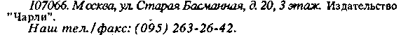 107066, Москва, ул. Старая Басманная, д. 20, 3 этаж. Фирма и издательство "Чарли".