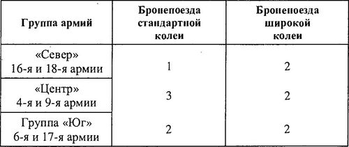 Количество бронепоездов в германских группах армий при вторжении в СССР 26 июня 1941 года