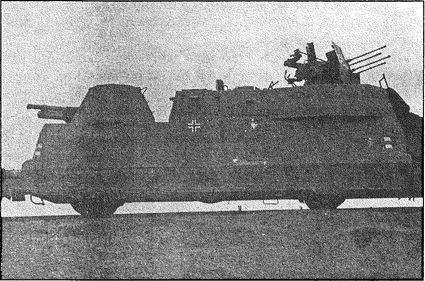 Наряду с танками «Somua S35» вермахт использовал для усиления огневой мощи бронепоездов и устаревшие танки типа «Hotckiss Н39» и «Renault FT». Вагон для пехоты снизу имел защиту от мин в виде двойного ряда железнодорожных шпал.