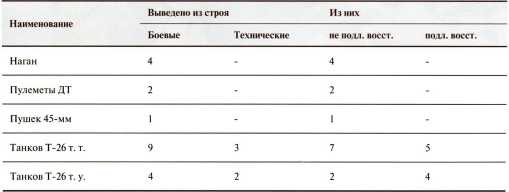 Сгорело 2 танка Т-28, не вернулось 2 танка Т-28.