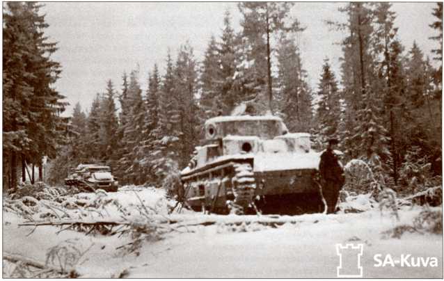 18.12.1939 На исходных позициях в Восси. Вчера нас постигло большое разочарование. Неправильные данные. Маршем шли из Томмила в район высоты 48,4 четыре часа (16 км)у такая у нас получается маршевая скорость. Но это было еще хорошо по сравнению с маршем из Райволы в Рисни (?). Командир стрелкового полка, который мы должны были поддерживать, сообщил, что у него все готово к штурму. Но таблиц позывных и таблицы частот у него не было. Срочно начали их составлять. До начала наступления оставалось всего полчаса. Артиллерийская подготовка слабенькая. Стреляют три — четыре батареи от силы. (Вести огонь должны были шесть артиллерийских полков). Вскоре все стало ясно: приехал Синенко (начальник штаба 20-й бригады — примечание автора) и сообщил, что артподготовка и танковая атака отменены, так как противник отступил и наша пехота заняла Хоттинен и Турта — цель наступления нашего батальона. Поскольку путь был открыт, предполагалось пустить вперед 10-й танковый корпус напрямую на Выборг. Но 10-й танковый корпус запоздал и нам был отдан приказ выдвигаться. Куда и зачем, непонятно. Начало уже смеркаться. Впереди шел 95-й танковый батальон…