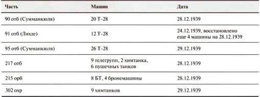 Потери 217-го отдельного танкового батальона на 21 декабря 1939 года приведены в таблице ниже.