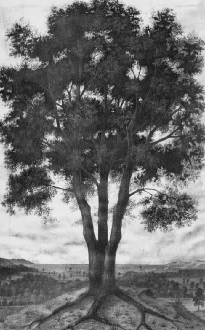 Если говорить о заказе, порученном «школе мастеров» Генрихом Гиммлером, то изображение «Мирового Древа» — ясеня было доверено Хайнцу Хиндорфу (1909–1990). В летописи «школы мастеров» (велась в ней и такая) эта картина впервые упоминается 30 августа 1939 года. Из того же документа следовало, что ее написание было закончено 30 марта 1940 года. Как ни странно, но «Ясень» в начале упоминался как темперная живопись, а в 1940 году как картина, выполненная масляными красками. Сама картина представляла собой изображение дерева, которое занимало почти всю поверхность холста. У ясеня была детально прорисована вся листва, что являлось весьма кропотливой работой. Композиция картины как бы делила пространство холста на три части. Самая нижняя часть заканчивалась с уровнем земли, взгляд зрителя как бы уходил под землю, что позволяло видеть корни дерева. При этом на картине был использован характерный для живописи Пайнера уходящий вдаль ландшафт, который почти на линии горизонта заканчивался полоской синего моря. Над этим синим морем почти на три четверти холста нависало золотистое небо. Ясень, который являлся в скандинавской и германской мифологии «мировым древом», раскинул свою широкую крону на этом широком небосводе. Мифологические отсылки в данной картине более чем очевидны. Согласно Эдде, первый мужчина Аскр был создан именно из ясеня. При этом в «школе мастеров» использовали не только языческие, но и христианские традиции. Золотистое небо явно было позаимствовано из христианской иконографии, так как именно такое небо окружает святых. В данном случае происходила некая «канонизация» ясеня. Тот факт, что данная картина должна была быть вывешена в обширном судебном зале, как бы указывает на то, что эсэсовцы должны были быть вовлечены в длинную цепь непрерывных германских традиций.