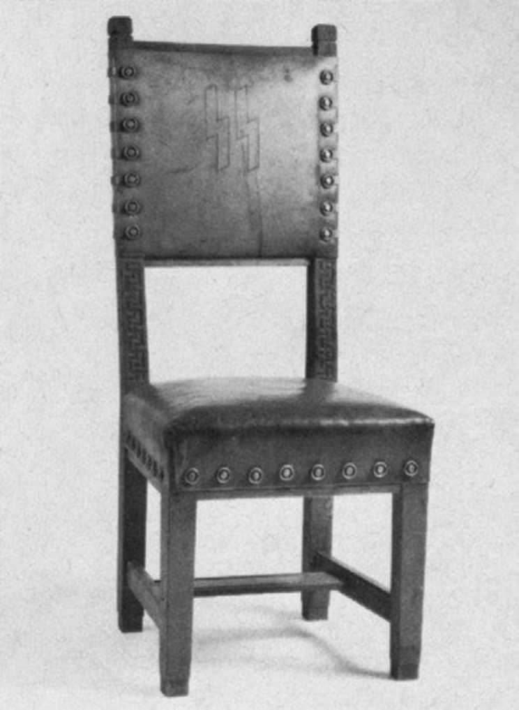Если говорить о картинах из второй группы, то сразу же надо оговориться, что до 1938 года в Вевельсбурге почти не было картин. Первый комендант замка Манфред фон Кнобельсдорф писал в своем дневнике 7 марта 1938 года: «В очередной раз осматривал просторную столовую. Она одно из лучших наших помещений… Резные фигуры, изображающие человеческие добродетели, полностью отделанные деревом стены, камин, на котором по нашей совместной инициативе с унтерштурмфюрером Франком выбиты факты из истории замка, великолепные кожаные стулья, светильники с чугунными украшениями, герб группенфюрера на восточной стене — все это сливается в единую гармоничную картину». Показательно, что в этом описании ни разу не упомянуты картины. Более того, в своем дневнике Кнобельсдорф счел достойным упоминания лишь одно полотно: «Картина с изображением фюрера, написанная профессором Рихельтом, висит над камином. Он рисовал фюрера 33 раза».