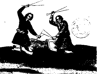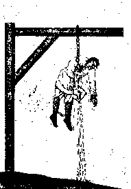 В XVIII в. все эти виды виселицы также известны нам из источников. Простое повешение совершалось обычно на виселице, стоящей на эшафоте, но случалось, что для этих целей использовали иные приспособления, вроде дерева или ворот, повешение было достаточно простой в исполнении казнью, хотя и не такой эффектной, как отсечение головы. Стрельцов в 1698 г. вешали не только на виселицах (в том числе общих, сразу для нескольких висельников), но, как уже отмечалось, на бревнах, вставленных в бойницы стен Белого города и Новодевичьего монастыря (290, 265). «Глаголь» чаще всего использовался для подвешивания за ребро. В воззвании подавлявшего восстание Пугачева генерала Панина сказано, чтобы во всех «бунтовых» селениях поставить «по одной виселице, по одному колесу и по одному глаголю для вешания за ребро» (122, 27). Как описывает А.Т. Болотов, видевший казнь Пугачева, несколько сообщников «злодея» казнили одновременно с ним на виселицах, стоявших вокруг эшафота. Их подняли на ступеньки лестниц, прислоненных к виселицам, а на головы надели холщовые мешки — «тюрики». В тот момент, как палач отрубил Пугачеву голову, преступников разом столкнули с лестниц (165, 191–193).