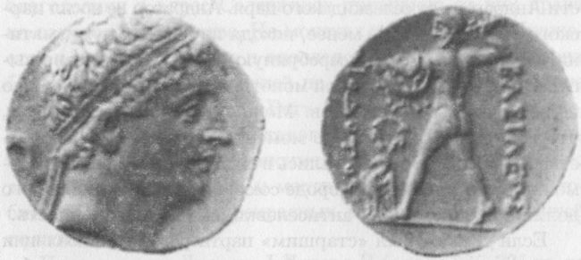 Характерно, что Диодот в монетной чеканке сначала "провозгласил" свое отложение заменой типа обратной стороны на золотых и серебряных монетах (его "говорящий" тип - шагающий Зевс), но сохранил при этом в легенде имя Антиоха II и его титул [4] (Ил. 6). Ф. Хольт считает, что время данного чекана Диодота относится к 255-250 гг. до н. э.[5] Следующий шаг Диодота I, уже означающий его окончательный разрыв даже с номинальной зависимостью от Селевкидов, - помещение им на монетах своего имени и принятие царского титула (Ил. 7-8). Этот акт, вероятно, связан со смертью Антиоха II в 247 г. до н. э.[6]