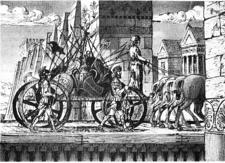 Много дней понадобилось эллинам, чтобы собрать все трофеи. Ведь персы привезли с собой несметные богатства: золотые и серебряные столы, позолоченные ложа для стратегов, богато украшенное золотом оружие, золотые чаши для питья, браслеты, кольца, диадемы… Из этой добычи большая часть была посвящена богам и их храмам. Остальное эллины поделили между собой.
