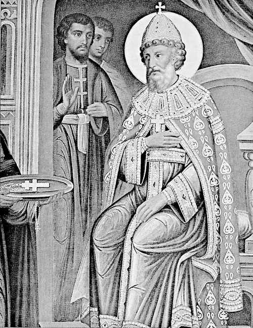 Несмотря на некоторое хронологическое несоответствие (перенесение перста приурочено в Сказании к 6600 г. от Сотворения мира, то есть к 1092/93 г. от Рождества Христова, тогда как киевское княжение Владимира Мономаха датируется 1113–1125 гг.), есть все основания полагать, что перенесение из Константинополя на Русь частицы почитаемой христианской святыни находится в прямой связи с заключением в начале 20-х гг. XI в. русско-византийского мира. Очевидно, перст Иоанна Предтечи был перенесен в Киев одним из посольств, которые вели переговоры о мире между двумя государствами и бракосочетании царевича Алексея и русской княжны, или же новым киевским митрополитом Никитой[346], прибывшим на Русь в 1122 г. Ввиду особого государственного и церковного значения десницы святого Иоанна, передачу частицы этой реликвии русскому князю можно рассматривать как официальный государственнорелигиозный акт[347]. Сопровождался ли он присвоением Владимиру и его сыну Мстиславу каких-нибудь высоких имперских титулов, вроде цесарского, доподлинно сказать нельзя; примеры Владимира I Святославича и Ярослава I Владимировича, во всяком случае, допускают такую возможность[348]. С гораздо большей уверенностью можно утверждать, что с этих пор в роду Мономаха появилась традиция использования перста святого Иоанна при великокняжеской интронизации, вследствие чего титул великого князя на Руси стал приравниваться к царскому[349]. Это видно как на примере Мстислава Владимировича, прямо именуемого царем в известной надписи на принадлежавшем ему Евангелии[350], так и его потомков: сыновей Изяслава и Ростислава Мстиславичей и внука Рюрика Ростиславича, по отношению к которым летописцы употребляют слова «царствовать», «царский», «царство» (в смысле правление) и т. п.[351] Подобная забота о титулатуре хорошо согласуется с отмеченным выше стремлением Мономаха закрепить великое княжение за своим потомством. Таким образом, не исключено, что память о перенесении перста Иоанна Крестителя на Русь в последние годы княжения Владимира Мономаха повлияла на складывание легенды о «Мономаховых дарах» в древнерусских памятниках XVI–XVII вв.