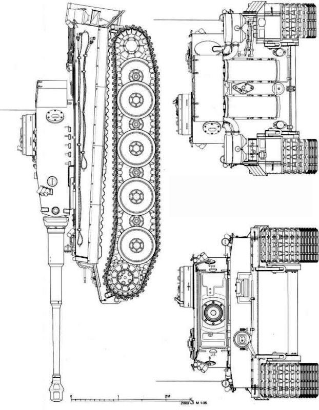Pz.Kpfw.VI Ausf.E «Тигр» позднего периода выпуска (вид сбоку, спереди и сзади).