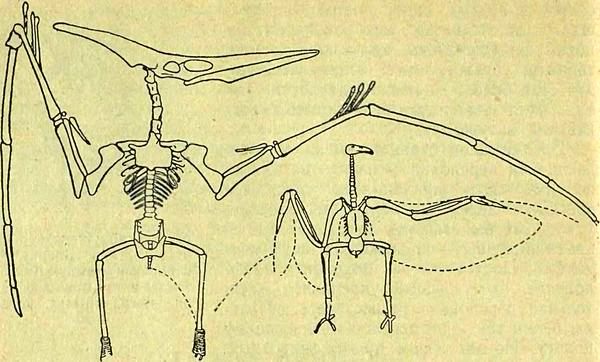 Когда в конце прошлого века изобретатели — сразу в нескольких странах — стали работать над созданием летающего аппарата — будущего аэроплана, — они начали с изучения скелета птеранодона, чтобы на его примере понять тайну полета.
