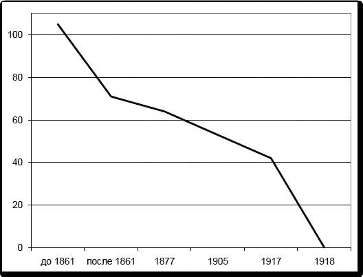 Диаграмма № 1. Земля в помещичьем владении, млн. десятин[109]