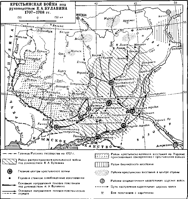 Начало крестьянской войны. Крестьянская война 1707–1708 гг. в России, которую возглавил донской казак Кондрат Афанасьевич Булавин, была ярким проявлением антифеодальной борьбы народных масс. Она началась на Дону и охватила обширную территорию юга Русского государства, распространилась на Поволжье, Слободскую Украину и достигла Запорожья.
