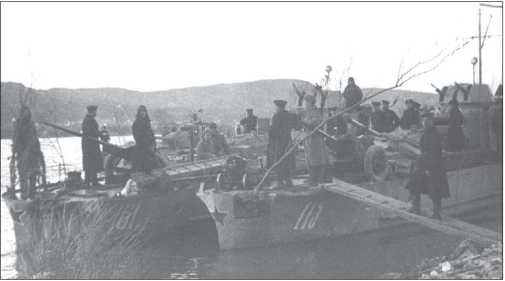 Посадка десанта на бронекатера Дунайской военной флотилии.
