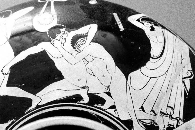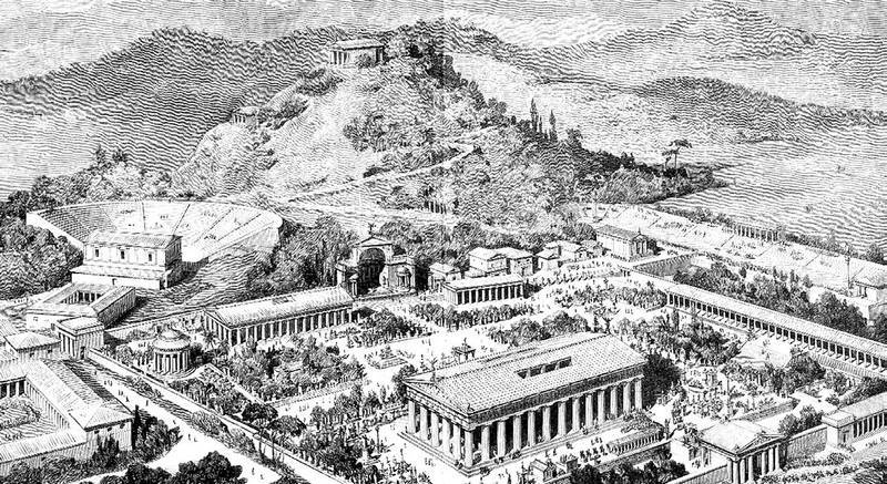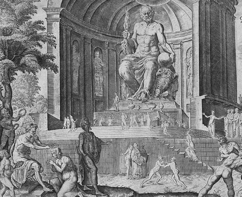 Статуя Зевса одобрительно взирает на то, как резвятся борцы