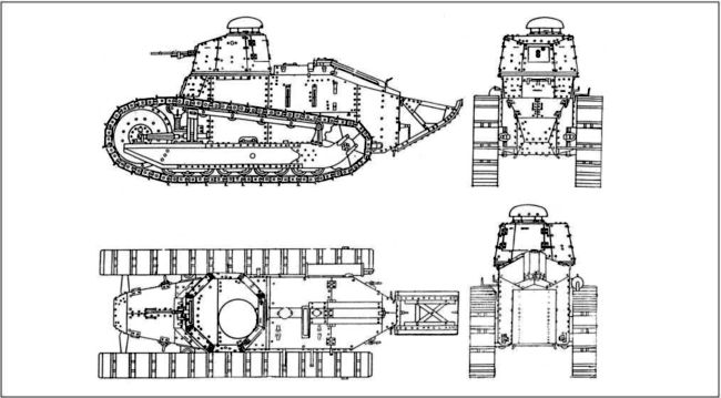 Легкий танк Рено FT-17 с клепаной башней и пулеметом 8 мм. Франция.