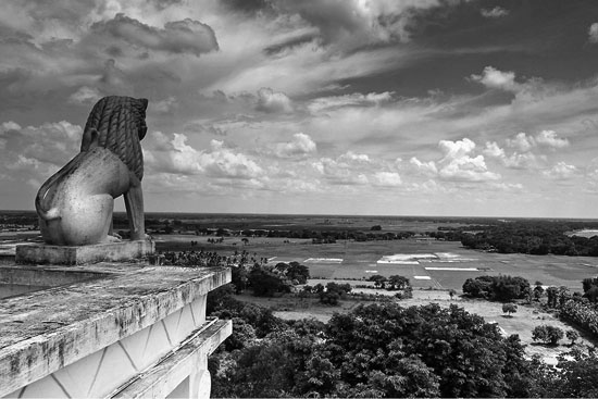 Скульптура лева, встановлена на пагорбі Дхаулі. Тут відбулася кривава битва, після якої Ашока прийняв буддизм. На пагорбі Дхаулі за наказом Ашоки були встановлені численні кам’яні колони. Найвідоміша з них та, у тексті з якої говориться про добробут у цілому світі