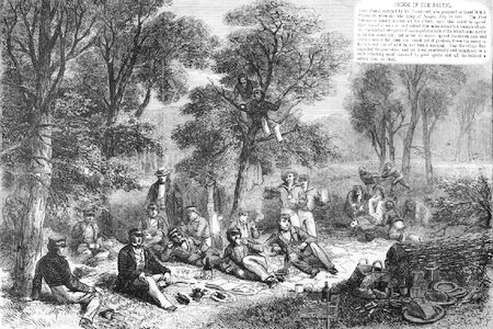 Английские военные моряки «на пикнике». Автор эскиза — Carmichael. The illustrated London news. 1856. April, 26.