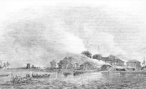 Высадка английского десанта в русское селение на берегу Белого моря. The illustrated London news. 1854. September, 9.
