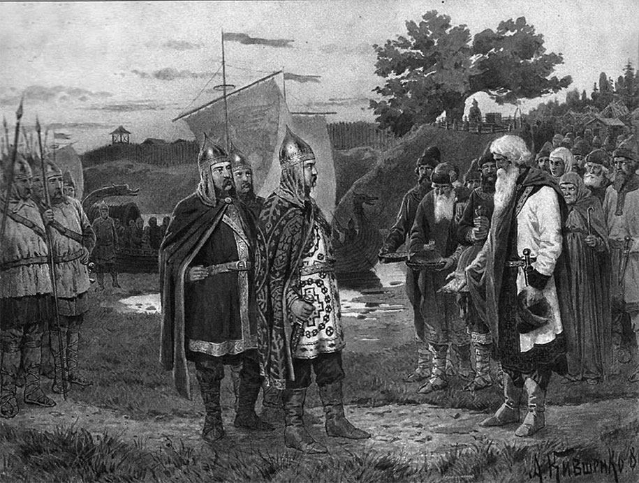 Призвание князя – встреча князя с дружиной, старшинами и народом славянского города. Художник А. Д. Кившенко