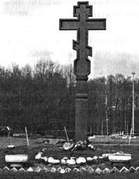 Не сумевшие предотвратить появление центра иеговистов, местные жители выразили к нему свое отношение, установив рядом православный крест. Май 2007 г. Фото автора