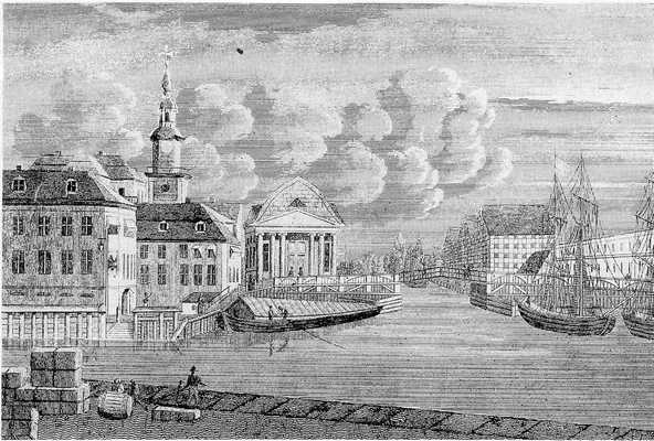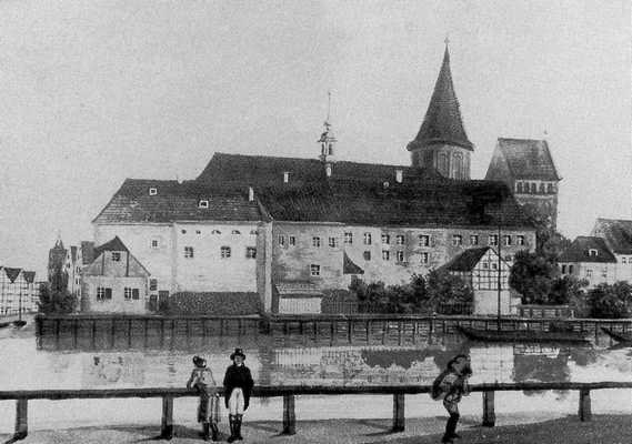 Кёнигсберг. Альбертовский университет. Вид на старый университет и на Кафедральный собор с набережной Фишбрюке, ок. 1800.