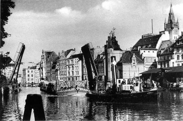 Прегель у моста Шмидебрюке, в 1896 г. полностью перестроенного в разводной мост.