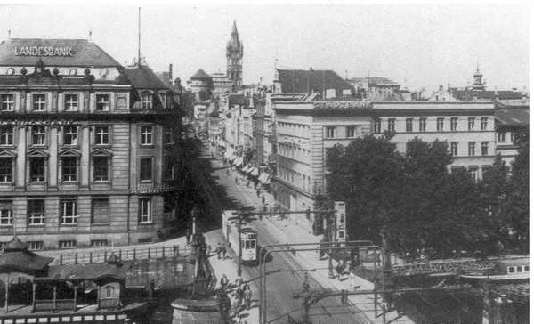 Кёнигсберг. Вид на Кнайпхофскую Ланггассе. Слева – здание Центрального банка провинции Восточная Пруссия.