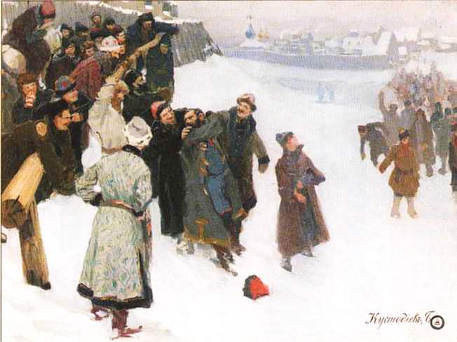 Б. Кустодиев Кулачный бой на Мосте-реке
