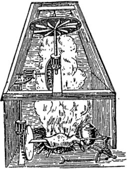 «Механический домовой» — газовая турбина, вращающая вертел с бараньей тушей.