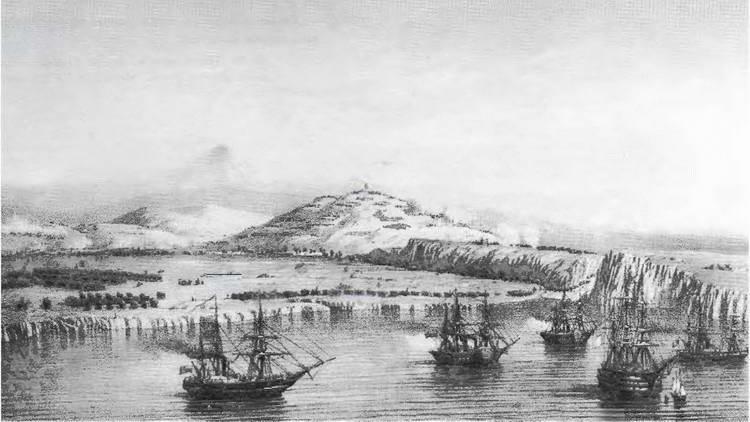 Союзный флот поддерживает продвижение 2-й дивизии. Английский рисунок второй пол. XIX в.