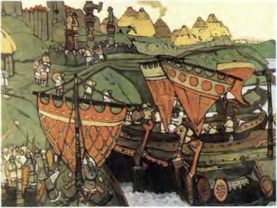 В конце весны, пока в малых реках была высокая вода, из Смоленска, Любеча, Чернигова, из других местностей поплыли в Киев ладьи. Никогда еще не собирались на Днепре корабли в таком числе — по свидетельству летописца, их было две тысячи! И люди были разные: поляне, на чьей земле Киев, древляне, северяне, кривичи, радимичи, дулебы, вятичи, хорваты, словене с Ильмень-озера, воины неславянских племен — чуди и мери, отряд воинов-варягов.