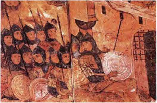 Византийцы имели большое войско: конницу, пехоту, отряды метательных машин — баллист и катапульт, бросавших тяжелые копья, заостренные бревна, многопудовые камни и сосуды с горючей жидкостью. Для морских боев и перевозки десантов у них были корабли-триеры с парусами и веслами. Воины Византии, их начальники сражались искусно и беспощадно, бывали и невероятно жестокими. Однажды, напав на соседнюю Болгарию, они взяли в плен пятнадцать тысяч человек, всем им выкололи глаза и слепых отпустили домой. Расчет был прост: о таком жутком деле узнают соседние с Византией народы и будут ее бояться.