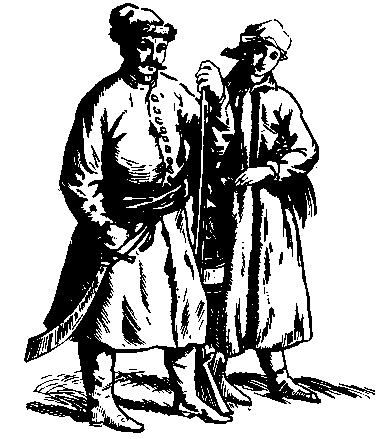 Казацкая старшина. Рисунок на полях карты Украины Г. Боплана. XVII в.
