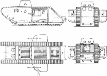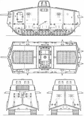 Проекции танка A7V корпусом «Крупп».